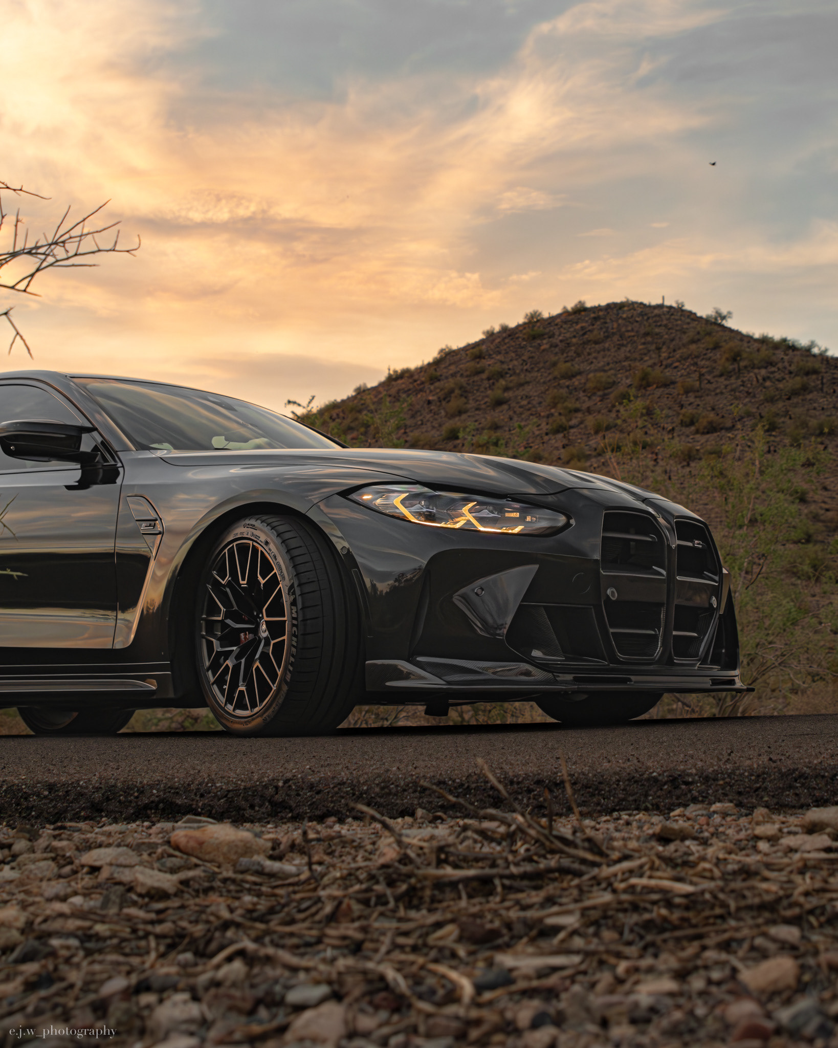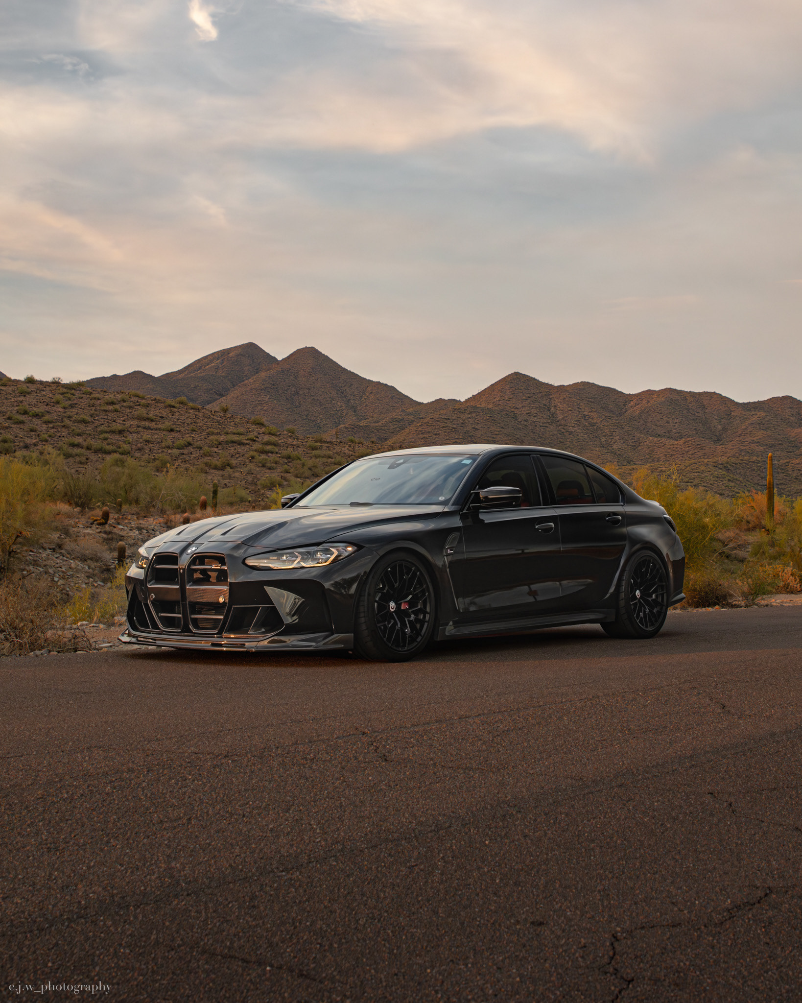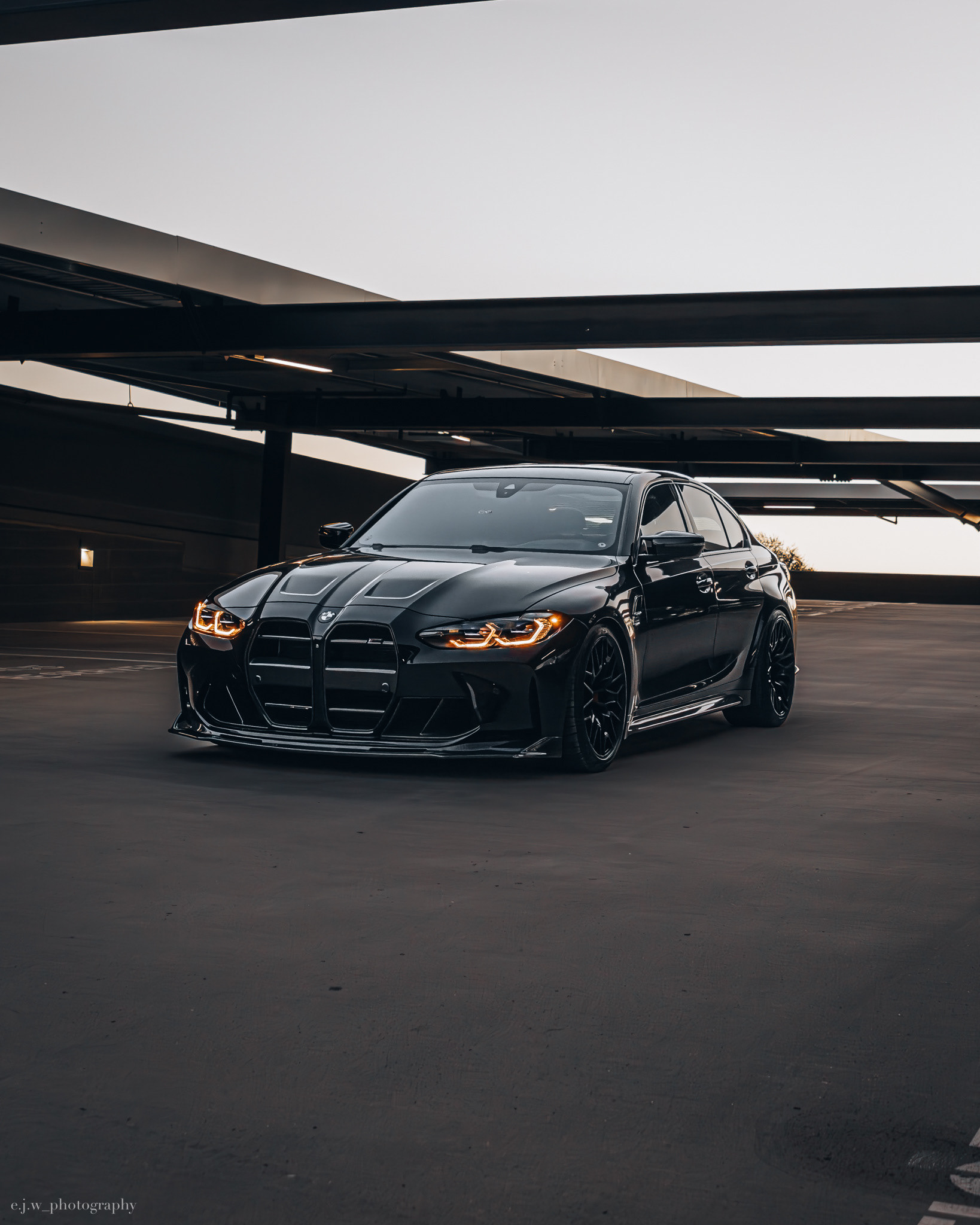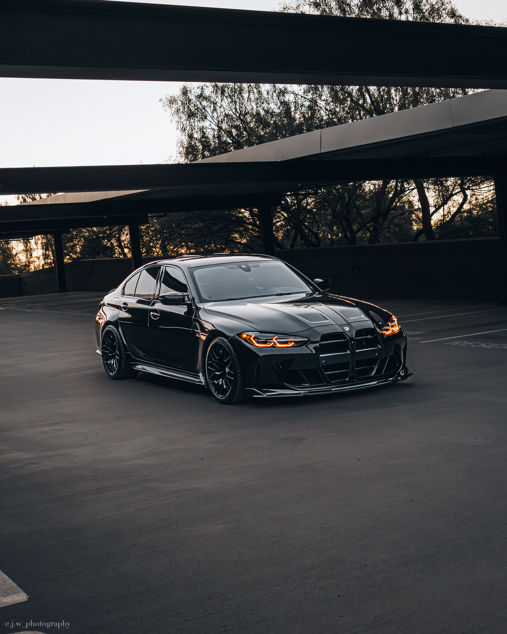 The BMW G80 M3 Competition xDrive is powered by a 3.0 liter twin turbocharged S58 inline six producing 503 horsepower, paired with BMW’s xDrive all wheel drive system and an 8 speed M transmission. Finished in sleek black, this example highlights the wide stance, sharp body lines, and aggressive front design that define the latest generation of the M3.